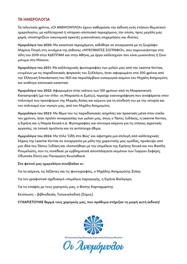 Anemomyloi Calendar 2025